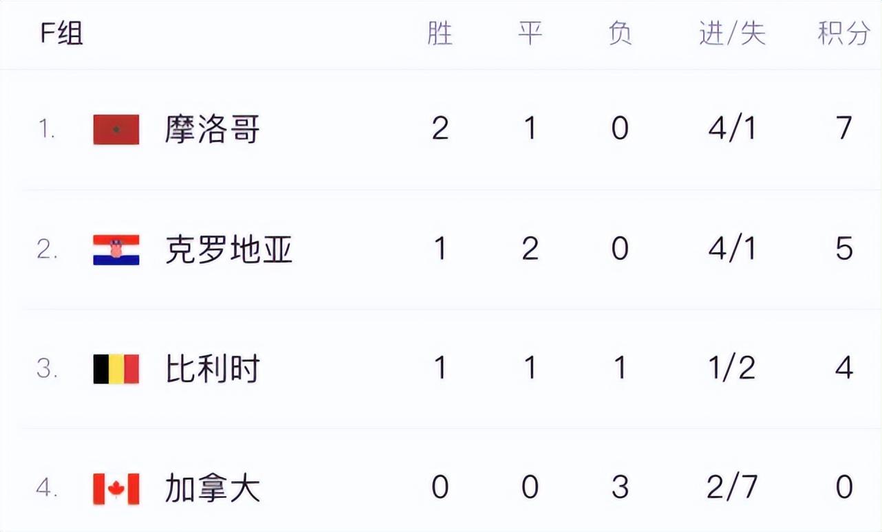 北京时间12月1日23:00,世界杯小组赛F组第3轮,加拿大对阵摩洛哥。上半场齐耶赫和恩内斯里各建一功,阿格德打进本届世界杯首粒乌龙球;下半场双方互交白卷,最终摩洛哥2-1击败加拿大,2胜1平以小组赛第一的身份出线。