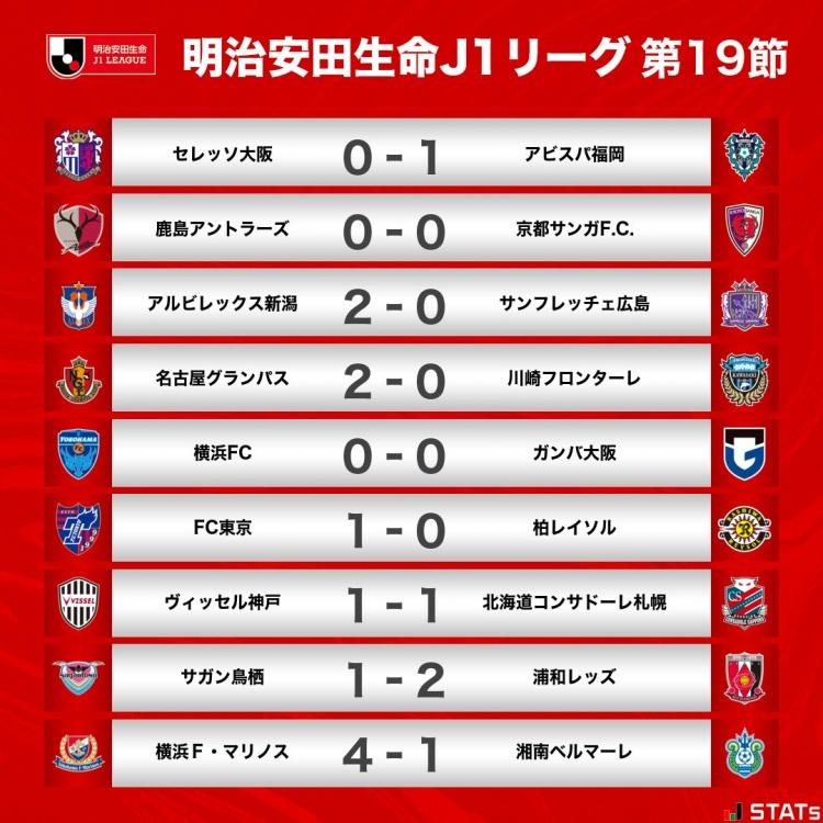 以下为J1联赛第19轮战报↓↓↓