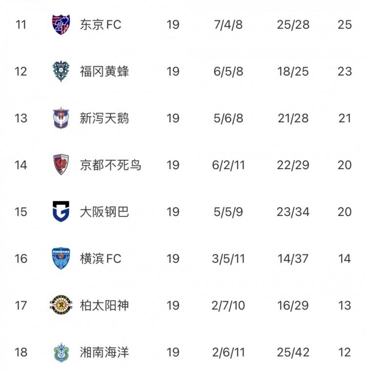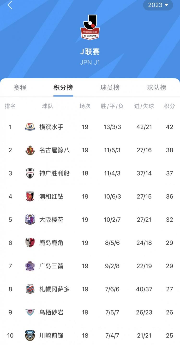 J1联赛最新排名如下↓↓↓