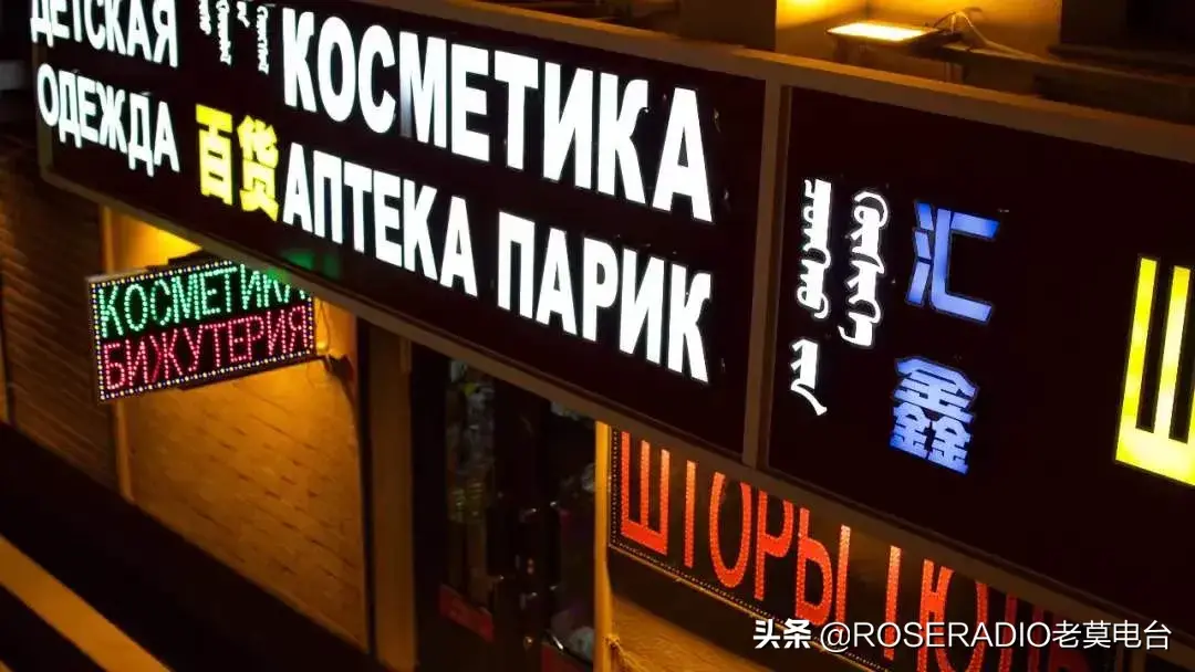 跟白天安静的边境城市不同,夜幕下金碧辉煌的满洲里,配上中蒙俄三语着实让人有点恍惚,而这里的招牌又有点80年代老上海滩的味道。满洲里真是一个神奇的地方,有一句话这么形容它——外国人来了像回家,中国人来了像出国。