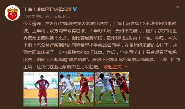 上港太可惜了,终场前遭到贵州队王帆的超远距离绝杀,1-2遗憾败北。但不得不说,本场曼萨诺的球队发挥的十分出色。希望本场的失利,不会影响上海上港在下周中对阵广州恒大淘宝的亚冠比赛!