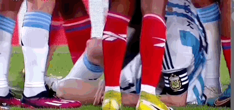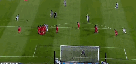 第55分钟,迪马利亚在前场带球被两名巴拿马球员抱摔放倒,为阿根廷队获得任意球。梅西主罚直接打门,门将再次将球托出横梁。