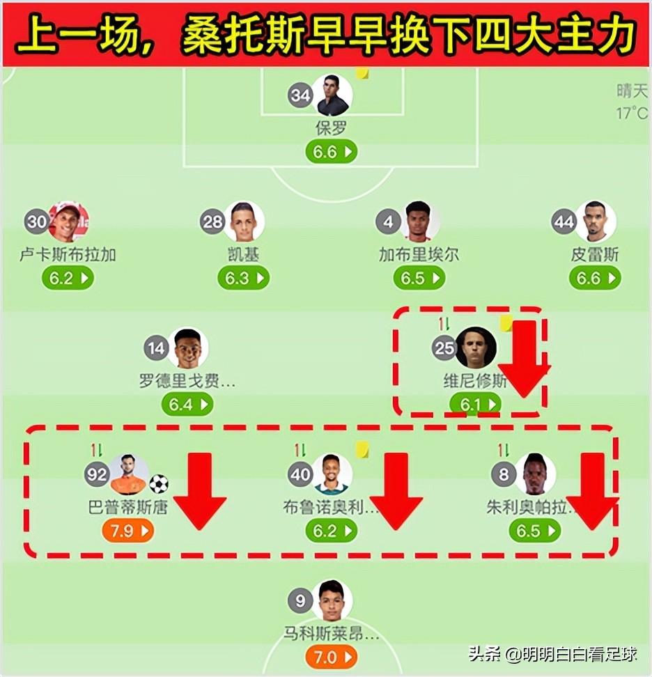 上一场比赛他们打布拉干蒂诺时,才第57分钟,就一口气换掉了中前场的三个主力,67分钟又换一个,6个中前场主力整整下去了4个,所以给到了布拉干蒂诺扳平的机会。