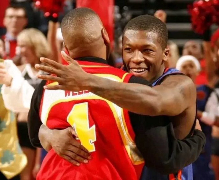 说起NBA历史最出名的矮个子球员,肯定少不了扣篮王“土豆”韦伯。作为韦伯之后又一个矮个子扣篮王,内特-罗宾逊必然要向自己的前辈致敬。然而这张照片里,号称175的内特,看起来比169的韦伯还矮。不由得让人质疑,莫非内特真的为了打进NBA,把自己的身高多报了几公分?