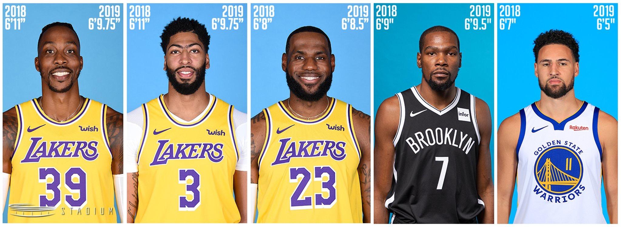 虎扑10月18日讯 据The Athletic记者Shams Charania报道,消息人士透露,一些球员根据联盟规定测定的不穿鞋净身高已得到NBA官方确认并公布,具体如下: