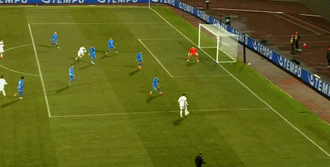 第15分钟,居莱尔禁区内左脚推射,皮球偏出球门