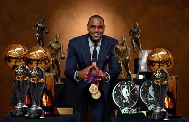 詹姆斯生涯至今3次夺冠,3次荣膺总决赛MVP,4次获得常规赛MVP,16次入选全明星,3次拿到全明星赛MVP,15次进入年度最佳阵容,6次入选年度最佳防守阵容,在2008年荣膺得分王。