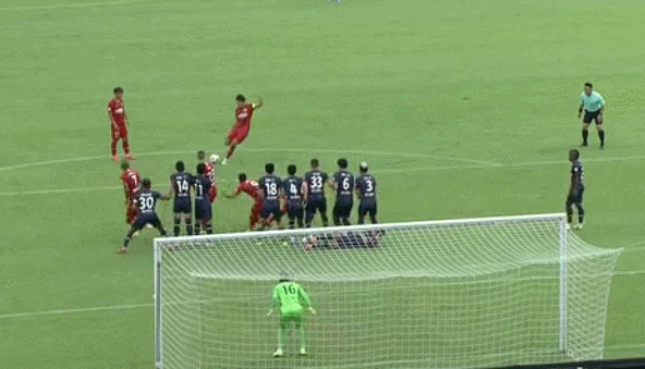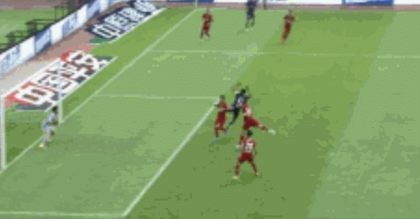 第11分钟,河南嵩山龙门前场左路策划高位逼抢,柯钊完成断球且将球捅到卡兰加,卡兰加接应柯钊传球转身沿左路突入对方禁区随即起右脚大力抽射,皮球直挂球门远端死角入网,1-0,河南嵩山龙门取得领先。