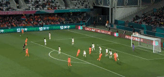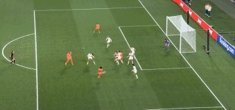 第13分钟,荷兰女足禁区前沿直塞,莉内特-贝伦丝特恩门前的铲射,被后卫挡了一下后高出横梁。随后,荷兰女足开出角球,后点的斯蒂芬妮-范德格拉特头球攻门入网,虽然荷兰女足门前有球员处在越位位置,但主裁认定未形成干扰,进球有效,荷兰1-0打破僵局。