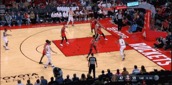 第二节火箭阿门-汤普森拿下10分,骑士艾伦拿下6分,半场结束火箭70-54领先骑士