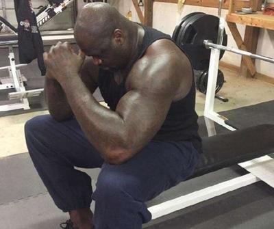 奥尼尔或许是大多数小伙伴看到文章题目就能对应到的球员,很多人都叫他奥胖,的确,巅峰期都能接近300斤,但胖的同时他还相当强壮,即使是如今的奥尼尔,肌肉线条都有棱有角。
