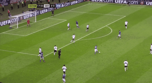 疲于奔命的德国人不但没能封杀传球率高达92%的蓝军统帅,更让得到空当充分空间的蒙托利沃手术刀般的反越位长传助攻巴洛特利锁定胜局,这比六年前皮耶罗和吉拉迪诺纵贯半场的二人转更加简洁致命,甚至堪比1998年世界杯1/4决赛上,德波尔与博格坎普的遥相呼应。