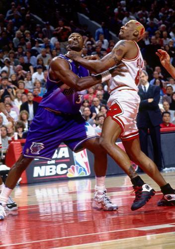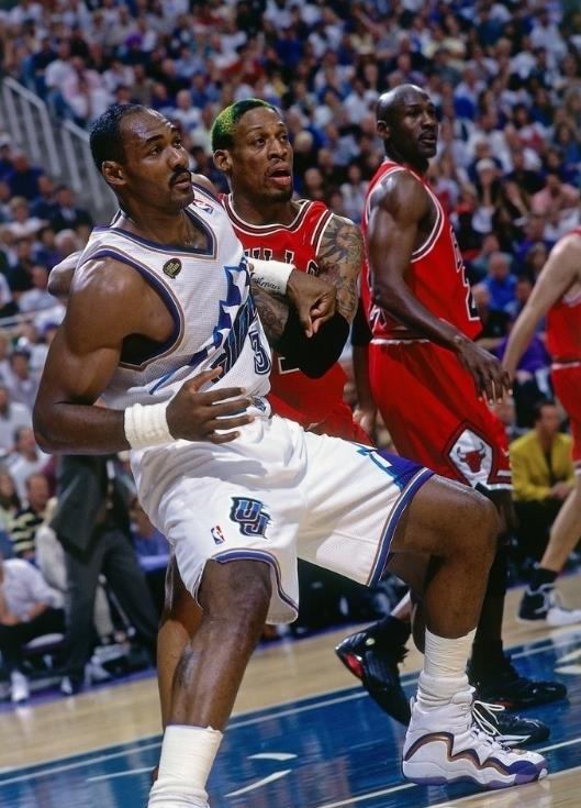 马龙是一位得分手段非常丰富的大前锋,职业生涯场均贡献25分,一共砍下36928分,排在NBA历史第二。而罗德曼是一位防守型的大前锋,虽然他在大学时期展现出了不错的得分能力,但是NBA跟大学是不同的,他进入NBA后就一直扮演防守型大前锋的角色,导致他原本就不出色的进攻能力进一步退化,但是他的防守能力却越来越出色,那么马龙这支最锋利的矛遇到罗德曼这块最硬的盾时,谁能笑到最后呢?