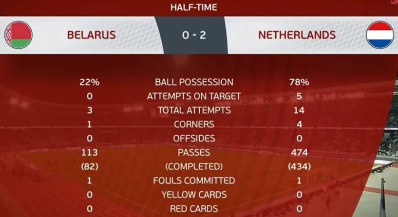 半场战罢,荷兰暂2-0白俄罗斯!