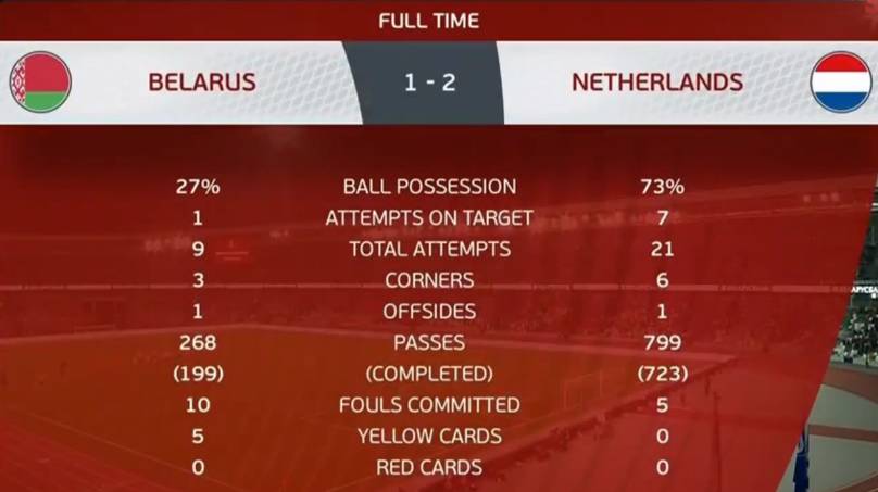 全场战罢,最终,荷兰2-1白俄罗斯!
