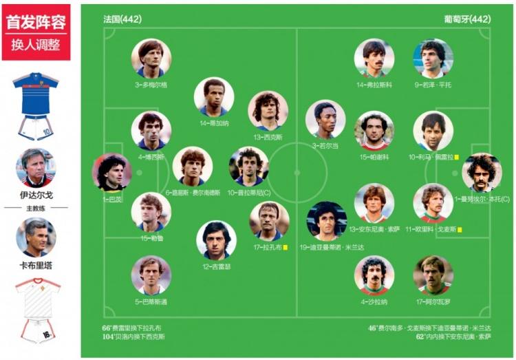 不过经典并不只是由一个人创造的,在那场令人惊叹的半决赛中,事实上还有另一位更为抢眼的主角——多梅尔格。从某种意义上来说,这位当时效力于法甲图卢兹的后卫并不像是那种会在顶尖舞台展现出风采的超凡人物。这一点后来也得到了数据的“印证”,因为多梅尔格总共只代表法国国家队出战了9场。但在那一晚的马赛,他先是用一脚势大力沉的直接任意球首开记录,然后又在加时阶段杀到禁区混战得分,都是有些意外的破门方式。据多梅尔格本人透露,那本是普拉蒂尼的主罚机会,但他察觉到了葡萄牙防守的空隙,于是向队友询问是否可以自己主罚,然后便打了对手一个措手不及。