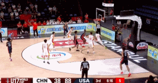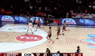 第三节,上来中国男篮连续失误,美国一波14-0将分差拉大至50分以上,随后中国男篮李悦洲连续三分命中带队止血,双方节末段展开拉锯,三节结束,中国男篮53-108美国。