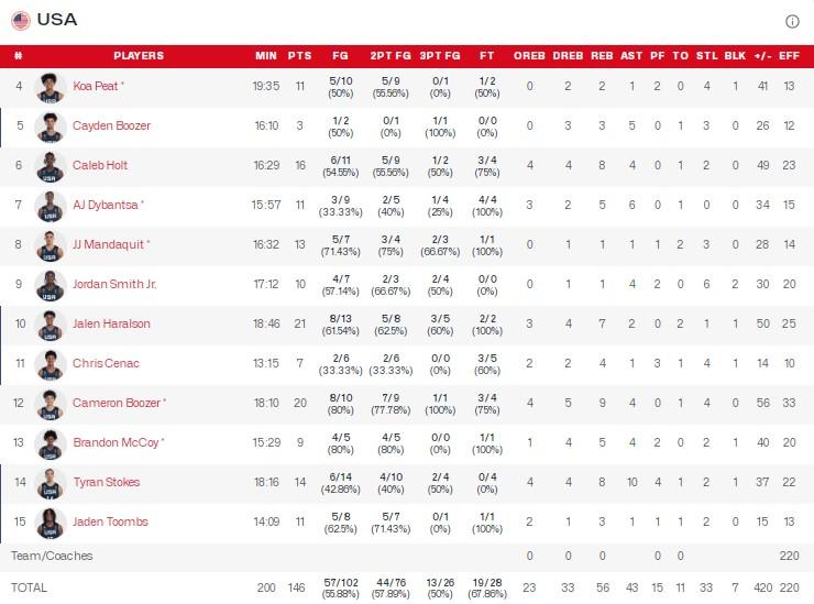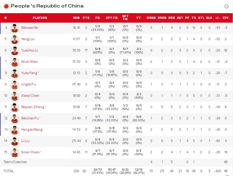 第四节,前半节双方继续保持拉锯,但来到后半节中国男篮再度进攻哑火,最后7分钟美国轰出一波33-0,全场结束,中国U17男篮62-146惨败美国U17。