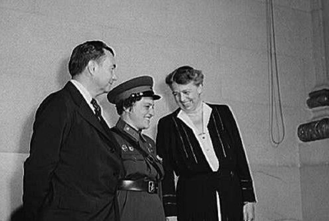 在美国记者报道她访美的时候,帕夫柳琴科爆出经典的语句"我25岁,我在前线已经消灭了309个德国侵略者。先生们,你们不觉得躲在我背后的时间太长了吗?"这让当时处于消极状态的美国无言以对。