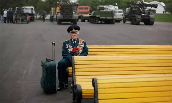 苏联解体之后,虽然这些幸存的老兵天各一方,有的甚至分属了不同的国家,但在战场上结下相互挡子弹的战友之情,却不会因此而被隔断。图中这位孤独的老兵,与他那些幸存的战友们约好,在每年的这个时间、这个地点相聚,因为他们就是在这一天成为了战友,从这里走向战场杀敌。