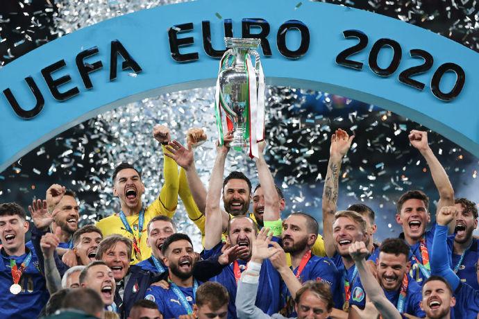北京时间7月12日凌晨3点,万众瞩目的2020欧洲杯决赛在英国伦敦的温布利球场展开争夺,英格兰队迎战意大利队。上半场开场仅2分钟,卢克肖进球帮助英格兰队取得梦幻开局,这是他个人在国家队的首球,也是欧洲杯决赛的历史最快进球;下半场,博努奇利用角球机会扳平比分。90分钟结束,两队打成1-1平,比赛进入加时赛。加时赛中,两队也都没进球。经过点球大战,最终意大利队总比分4-3击败英格兰,捧起欧洲杯冠军奖杯。