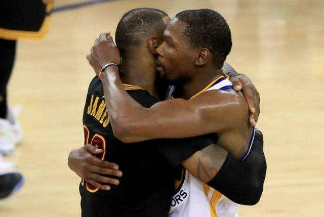 勇士是詹姆斯目前最大的对手,格林、库里、杜兰特都是与詹姆斯针锋相对的敌人。然而在私下里,曾与詹姆斯发生冲突的格林称赞詹姆斯:“他是历史级别的球员,他的生涯不可思议”。库里在得知欧文转会后说:“这个世界上居然有不想和詹姆斯一起打球的人”,而就在去年杜兰特夺冠后,与詹姆斯紧紧相拥,之后对记者说:“我并不认为我战胜了詹姆斯,在某些方面我仍在追赶他,我们的对决还在继续。”而作为勇士队的主帅,科尔也曾表达了自己对詹姆斯的赞扬,他甚至拿詹姆斯与张伯伦、比尔拉塞尔、乔丹等人作比较。或许来自对手这样的高度评价,才能衬托詹姆斯的伟大。
