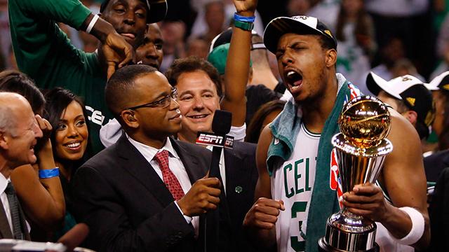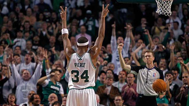 接下来的剧情就是,皮尔斯在比赛最后52秒命中锁定胜局的关键三分,并最终率领凯尔特人在热火主场拿下天王山。
