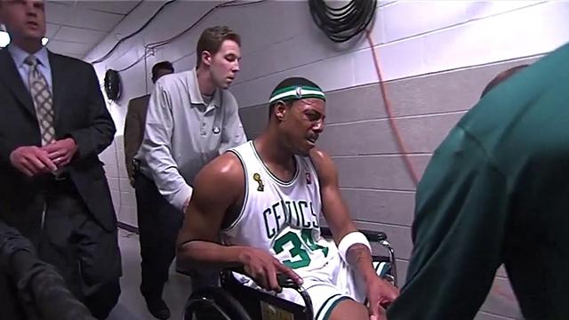 这轮系列赛的首场比赛中皮尔斯就受到膝伤的侵扰,甚至不得不坐上轮椅离开球场。在这一刻,整个波士顿似乎都蔓延着一种夺冠希望破灭的气息。然而,皮尔斯接下来却上演1970年总决赛威利斯-里德式的戏码。