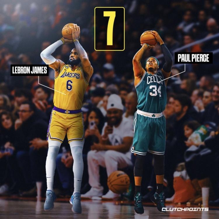 和詹姆斯并列第四的是保罗-皮尔斯,他同样是一个大心脏球星。皮尔斯的7记压哨绝杀里,有两次发生在季后赛,他分别在季后赛压哨绝杀过热火和老鹰,