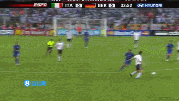 时间所剩无几,正当德国人在自家球迷面前急于扳平比分的时刻,波多尔斯基在前场的停球稍大,给了卡纳瓦罗一次上抢断球的机会。吉拉迪诺前场得球后逐步推进,脚下一做,皮耶罗禁区左侧单刀赴会莱曼,右脚一摆!大局已定!意大利2-0德国!