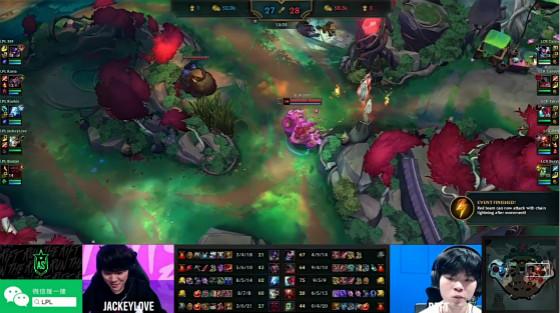 两波团战吃亏的LPL接下来在团战中凭借老牛与奥恩的团控打出了不错的效果,打掉了LCK所有复活甲还砍下了五个人头。第二个事件为河蟹赛跑,河蟹率先抵达终点的一方获胜。LPL在野区打出成吨控制效果,成功将LCK击溃。不过LCK复活后又赶来阻挠河蟹行进,LPL为了保护河蟹遭到LCK的团灭,峡谷先锋也落入LCK手中。