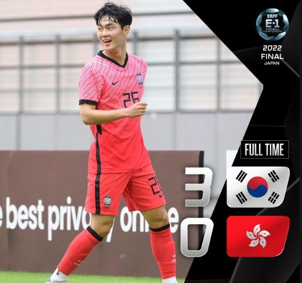 接下来双方均无建树,韩国队最终3-0取胜中国香港队,迎东亚杯赛事两连胜。