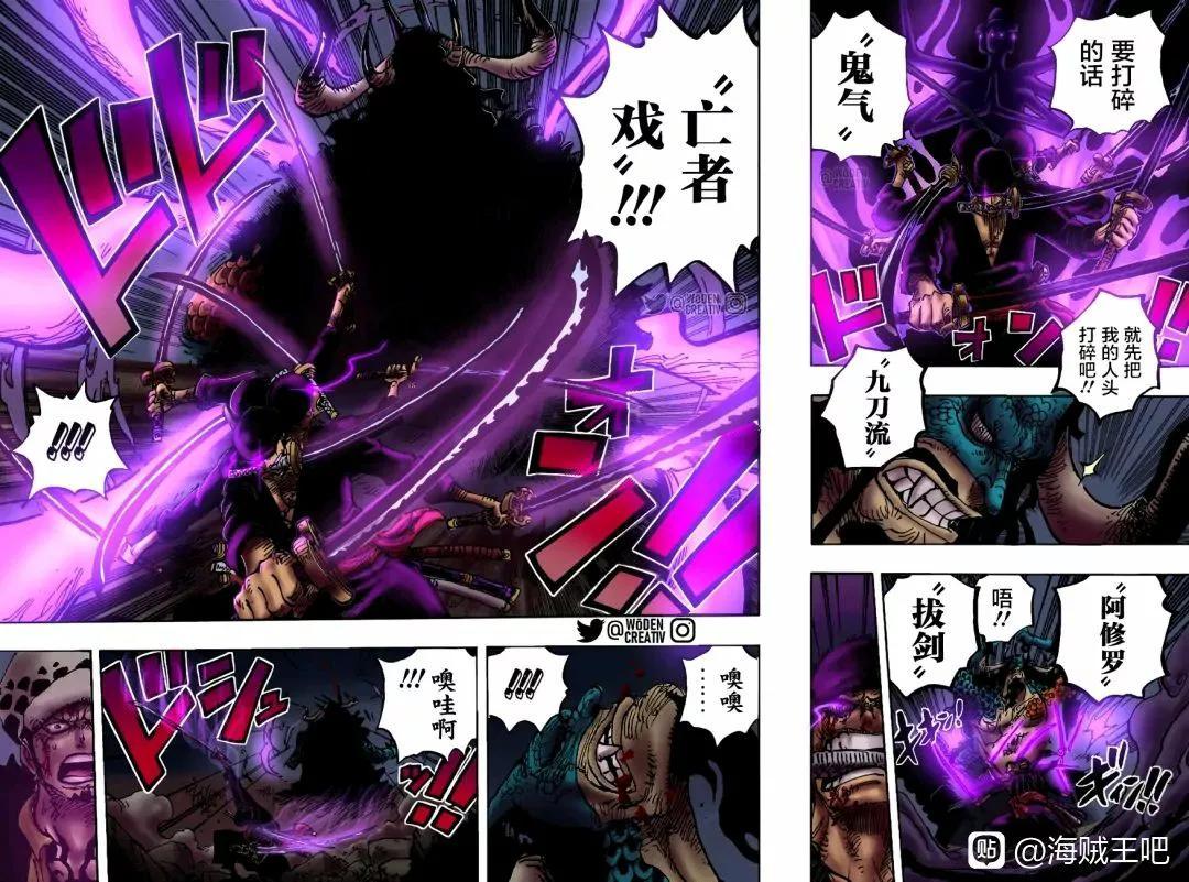 时隔多年再见“九刀流—阿修罗”,这一刀估计是这次战斗以来凯多收到过最大的伤害了吧。此话过后索罗和罗估计会短暂告别战场,五皇王路飞正式上线!!