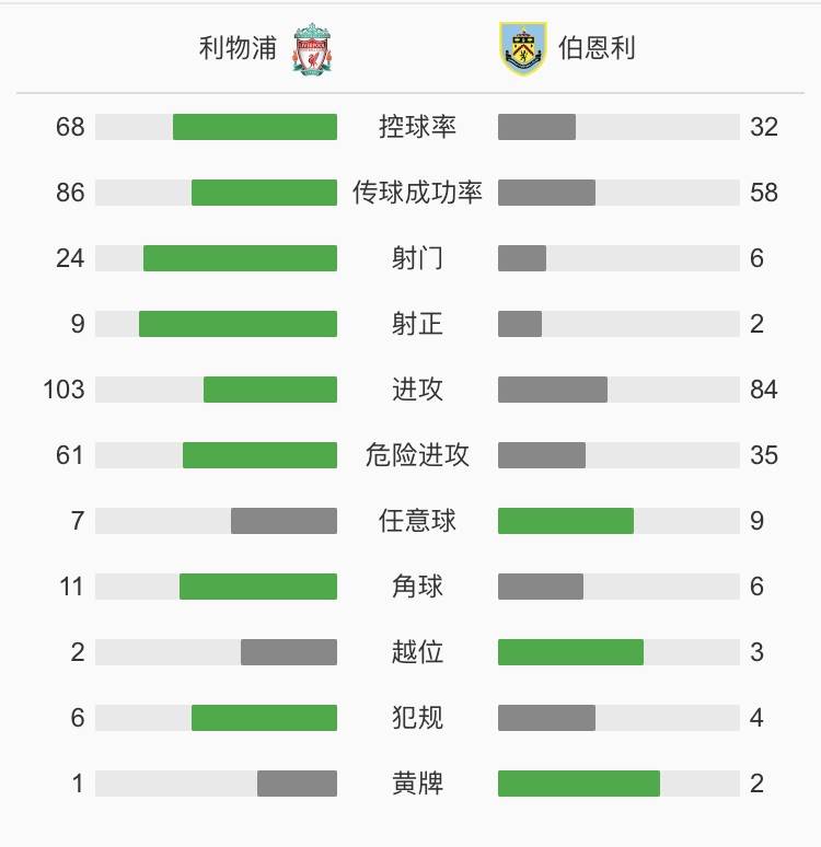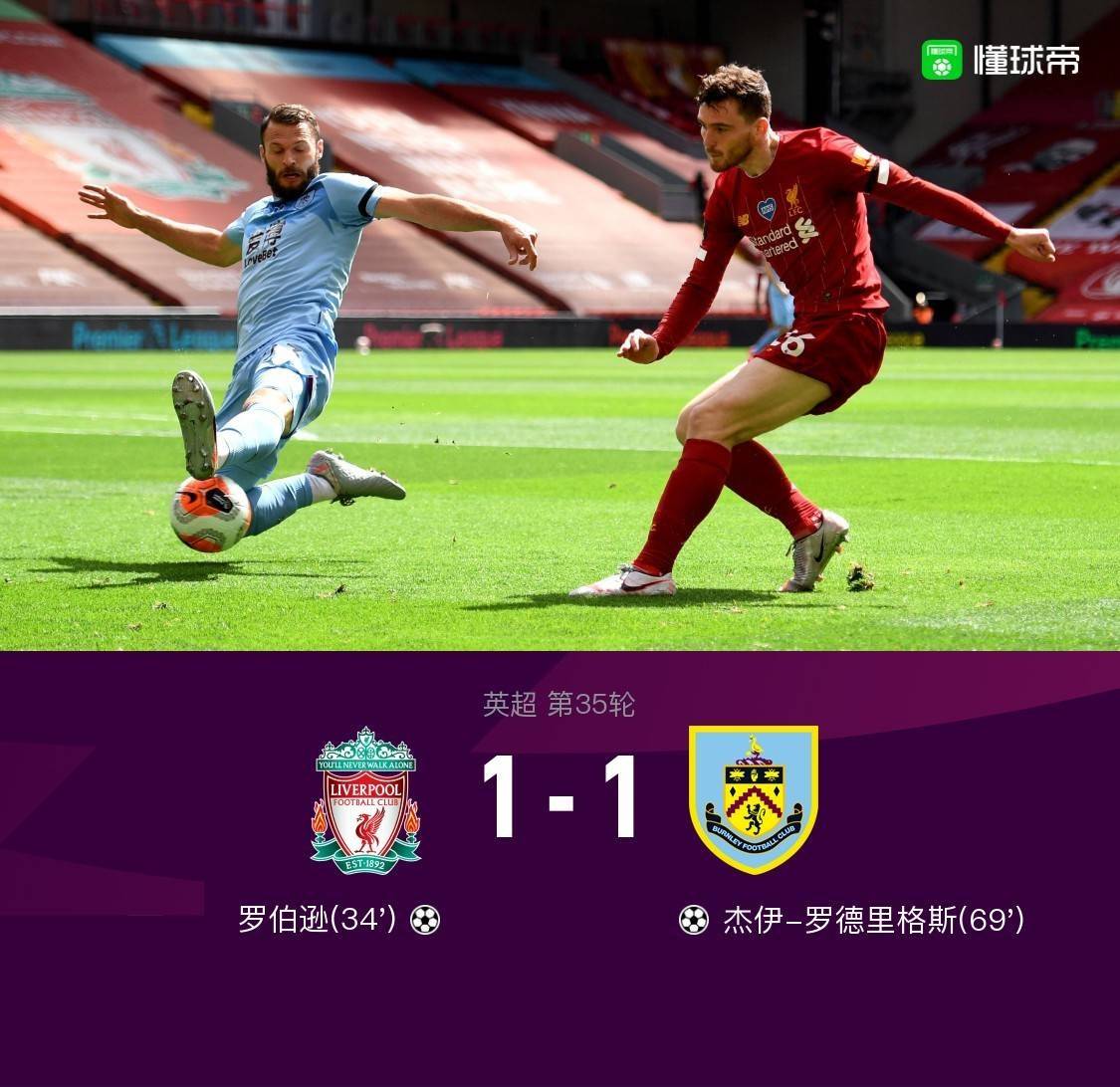 第34分钟,罗伯逊头球打破僵局。利物浦1-0伯恩利。