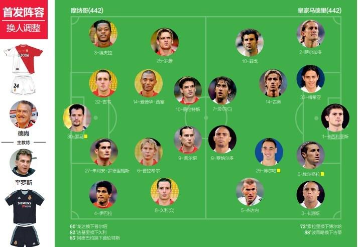 头球回点助攻久利,力压埃尔格拉轰炸破网,莫伦特斯的火力绽放足够让贵宾席的弗洛伦蒂诺如坐针毡。但一切为时已晚,当久利灵光一现送上脚后跟进球之后,客场进球居于劣势的皇马已然心理崩塌。强如劳尔也会在黄金机会前放出高射炮,罗纳尔多、齐达内、菲戈这些如雷贯耳的名字同样无法改变战况。当然皇马还有贝克汉姆累计黄牌停赛没上,但正如主帅奎罗斯所言:“灾难一般的结果,我们不能把问题归结于一名球员的缺阵。”关于皇马失败的深层次原因,不少人认为是主帅能力不足,但更受广泛认可的观点,是一场经典逆转再次证明了“堆砌巨星并不等于成功”。银河战舰于欧冠沉没,“渺小”的摩纳哥却书写了属于自己的篇章——那一年他们在德尚的率领下杀进决赛,直到遇上穆里尼奥的波尔图才停下了胜利步伐。
