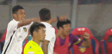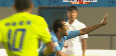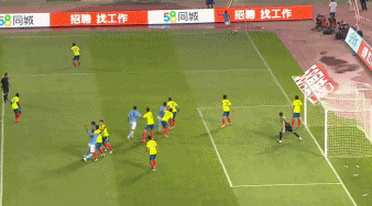 手臂受伤的格乌瓦尼奥抱怨对方门将出击动作过大,但却被另一位黄海队员一把直接推倒在地。