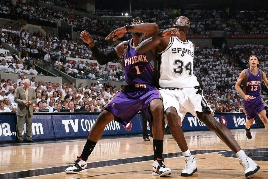 与此同时,灰熊队能够在这个赛季重回季后赛,自然是依靠他们的内线。扎克·兰多夫、马克·加索尔形成了非常良好的化学反应,两人一攻一守,涵盖了球队的大部分战术。而这一轮系列赛中,兰多夫场均可以得到21.5分、9.2个篮板和3.3次助攻,命中率得到了50%。他出色的低位技术,让受到伤病困扰的邓肯相当难受,而当时邓肯的内线搭档是几乎缩小版兰多夫的德胡安·布莱尔,几乎无法做到对兰多夫的有效限制。最具代表性的就是第六场比赛,兰多夫独得31分、11个篮板,在内线几乎予取予求。而邓肯和老麦克戴斯,合起来不过才20投9中,得到22分。