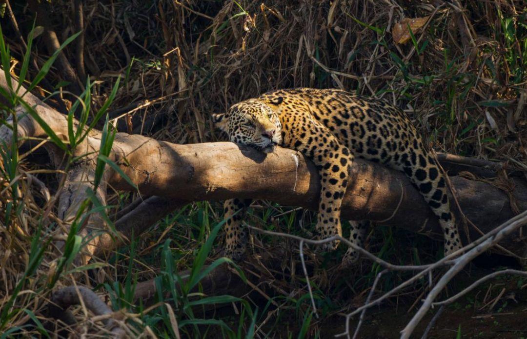 除此之外,美洲豹还有一项独一无二捕猎神技“爆头杀”。由于美洲豹的脑袋偏圆且骨骼结实,因此它们的咬合力非常惊人,一般情况下可以达到1100磅左右,而一数值按照体型同比例换算后,甚至超过了狮子和老虎。因此美洲豹经常依靠它们善于潜伏和游泳的特点,猎杀各种大型动物,并且在美洲很多地区,美洲豹是鳄鱼的头号天敌,它们依靠强大的咬合力可以在瞬间咬碎鳄鱼的头骨,因此美洲豹更像是一种结合了豹子和老虎后的全能杀手,实力非常强悍。