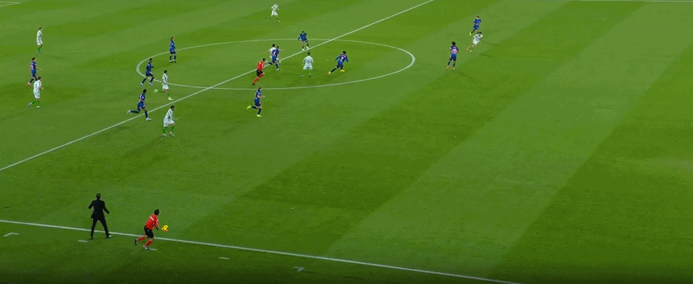 第86分钟,科雷亚面对出击的门将,连续调整再传中被防守球员拦截。↓