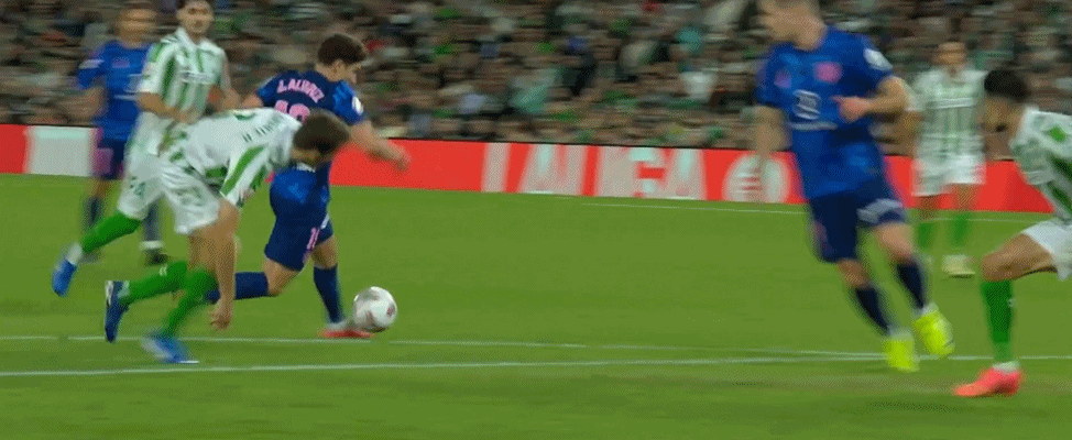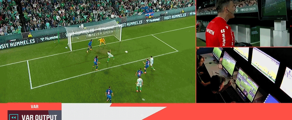贝蒂斯点球被取消!第65分钟,福尔纳斯禁区内凌空撩射中框弹出,福尔纳斯再头球被加兰踢到头部,通过VAR,裁判取消点球判罚!↓