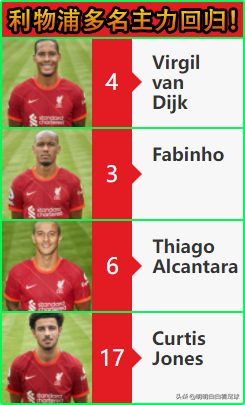 利物浦这边的好消息倒是很多,范迪克、法比尼奥、蒂亚戈等多名主力都回归了。