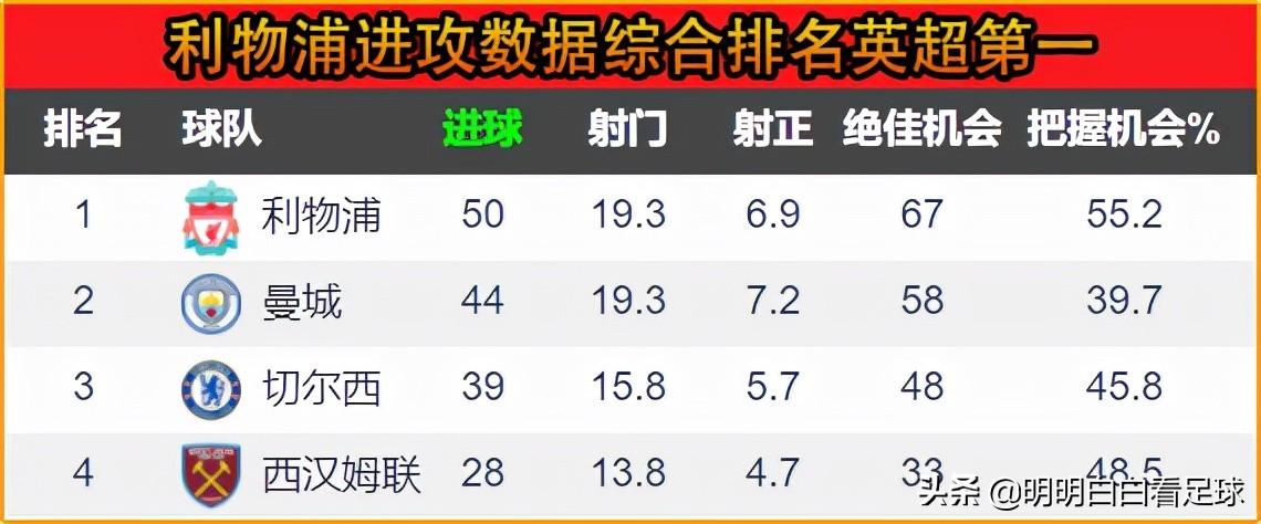 利物浦目前是英超进球最多、射门最多、创造机会最多的球队,放眼整个五大联赛也只比拜仁差一些。