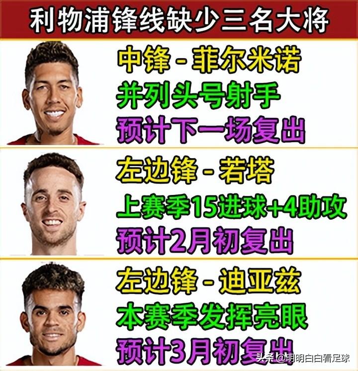 大家都知道,利物浦现在锋线上是有很多伤病的,菲尔米诺、若塔、迪亚兹都无法上场。