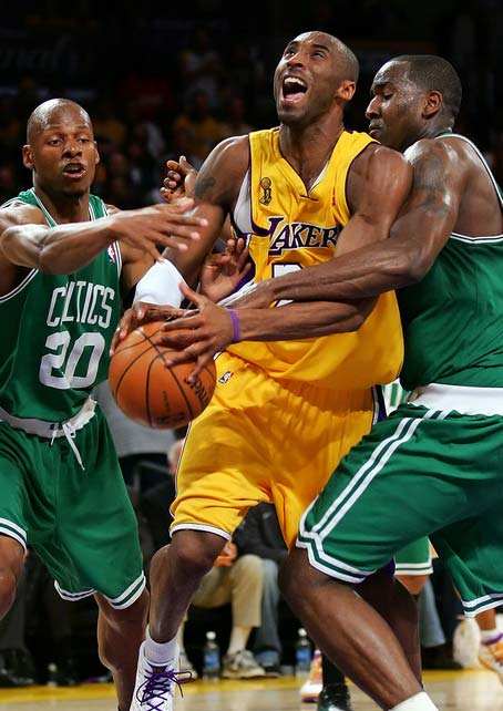 在总决赛6场比赛里,凯尔特人兵不血刃的就带走了科比带领的紫金军团。