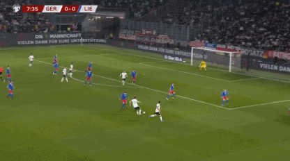 第76分钟,诺伊豪斯助攻穆勒破门,德国6-0领先列支敦士登。