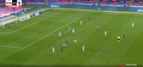 第24分钟,“卡萨多区域”送妙传,拉菲尼亚轻巧挑射破门,巴萨2-0