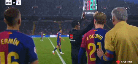 第56分钟,巴萨做出人员调整,德容和费尔明替补登场