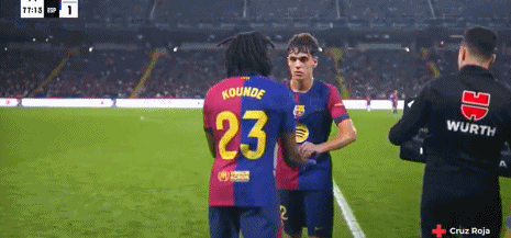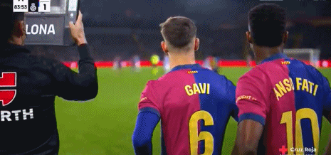 第85分钟,巴萨换人,加维和法蒂替补登场