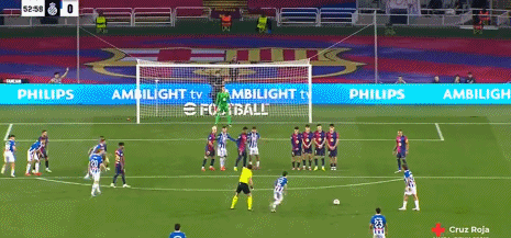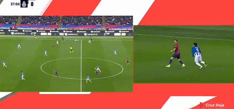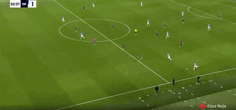 第39分钟,莱万兜射,西班牙人门将飞身将球扑出