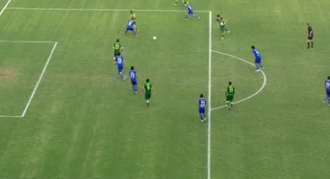 第17分钟,国安策动攻势,张玉宁带球沿右路突破且扛开防守人在底线附近完成倒三角回敲,前插到禁区弧的费尔南多迎球起右脚抽射,皮球划出一道弧线飞入网窝,1-0,国安取得领先。